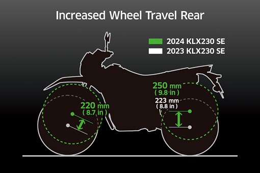 Jarak tempuh roda baru belakang lebih panjang: kini 220/250 mm (depan/belakang)